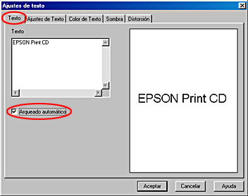 Haga clic en la ficha Texto, seleccione la casilla de verificación Arqueado automático y haga clic en Aceptar.