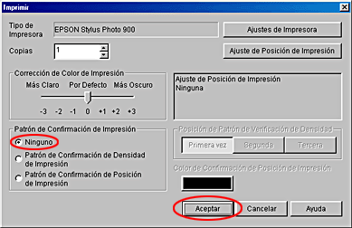 En Patrón de confirmación de impresión, seleccione Ninguno y haga clic en Aceptar.