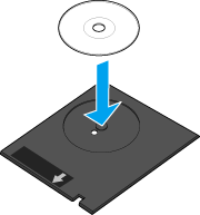 Coloque el Disco de confirmación de posición de impresión que acompaña a la bandeja de CD/DVD en dicha bandeja, e insértela en la impresora.