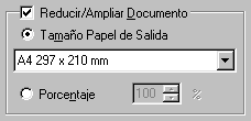 En el menú Composición (en Windows), seleccione la casilla de verificación Reducir/Ampliar documento y la opción Tamaño papel de salida.