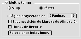 Especifica cuántas hojas de papel impresas va a ocupar la página ampliada del documento. Puede elegir entre 4, 9 y 16 hojas.