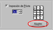 Para ajustar la forma en que va a imprimir el póster, haga clic en Ajustes. Se abrirá el cuadro de diálogo Ajustes del póster.