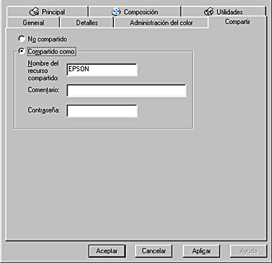 Si desea supervisar el estado de una impresora compartida, tiene que instalar EPSON Status Monitor 3 en todos los ordenadores que vayan a tener acceso a la impresora. Consulte las instrucciones en Instalación de EPSON Status Monitor 3.