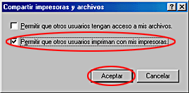 Seleccione la casilla de verificación Permitir que otros usuarios impriman con mis impresoras y haga clic en Aceptar.