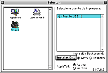 Elija Selector en el menú Apple, haga clic en el icono de su impresora y seleccione el puerto al que está conectada la impresora.