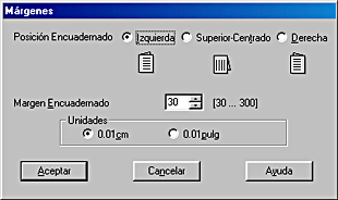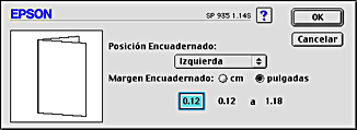 Especifique la posición del encuadernado en el papel. Puede elegir entre Izquierda, Superior-Centrado y Derecha.