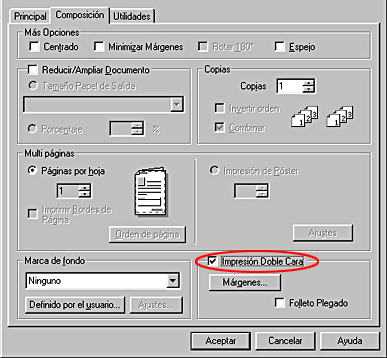 Seleccione la casilla de verificación Impresión Doble Cara del menú Composición.