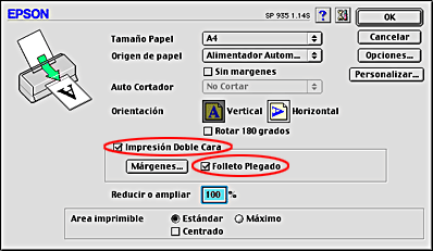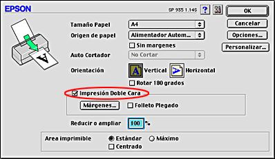 Seleccione la casilla de verificación Impresión Doble Cara.