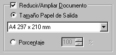 Aumenta o reduce proporcionalmente el tamaño del documento para que se adapte al tamaño del papel seleccionado en la lista Tamaño Papel de Salida.
