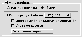 Especifica cuántas hojas de papel impresas va a ocupar la página ampliada del documento. Puede elegir entre 4, 9 y 16 hojas.