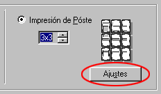 Para ajustar la forma en que va a imprimir el póster, haga clic en Ajustes. Se abrirá el cuadro de diálogo Ajustes del Póster.