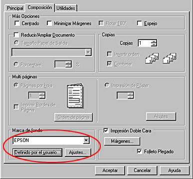 Elija la marca de fondo deseada en la lista Marca de fondo del menú Composición, y haga clic en Ajustes.