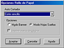 Configure los ajustes de Opciones en el cuadro de diálogo Opciones Rollo de Papel.