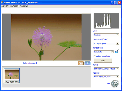 Inicio de EPSON RAW Print