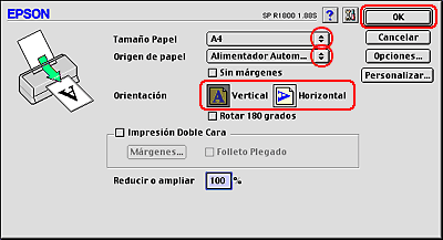 Seleccione Stylus Photo R1800 como el ajuste de Impresora.