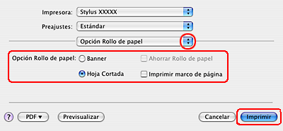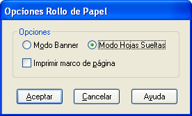 ![]() Para imprimir fotos de tamaño estándar, seleccione Modo Hojas Sueltas. Para imprimir titulares o "banners", seleccione Modo Banner.