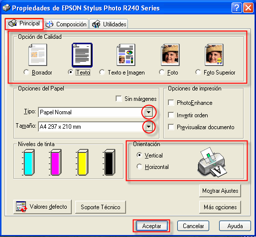 Haga clic en Aceptar para cerrar la ventana de los ajustes de la impresora.