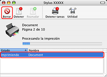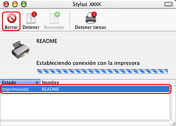 Haga clic en el botón Borrar para cancelar el trabajo de impresión.