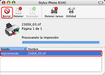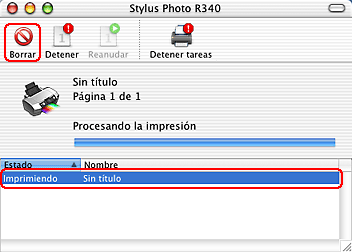 Haga clic en el botón Borrar para cancelar el trabajo de impresión.
