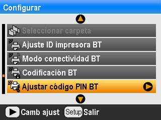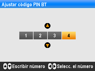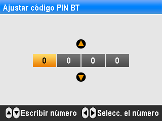 Si selecciona Apareado en Modo de comunicación, o si activa la Encriptación, tendrá que escribir una contraseña en el dispositivo preparado para Bluetooth si desea que se comunique con la impresora. La contraseña predeterminada es 0000.