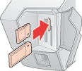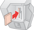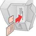 Inserte la tarjeta de memoria únicamente como se muestra más arriba porque si no podría averiar la impresora, la tarjeta o ambas. Si introduce una tarjeta de forma incorrecta, aparecerá un mensaje de error en la pantalla. Haga clic en Cancelar, saque la tarjeta de memoria e introdúzcala correctamente.