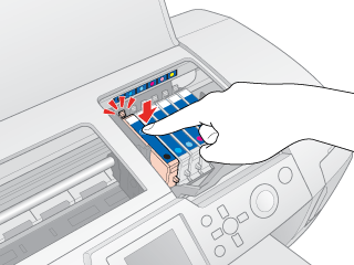 Si el error de tinta agotada tiene lugar después de que el cabezal de impresión se haya colocado en la posición de reposo, es posible que el cartucho de tinta no esté bien instalado. Repita todo el procedimiento a partir del paso 1 e instale el cartucho de tinta de nuevo hasta que oiga el clic que indica que está bien colocado.