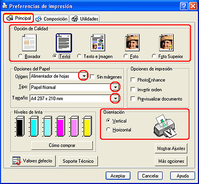 Seleccione el tamaño del papel de sus datos en el ajuste Tamaño.