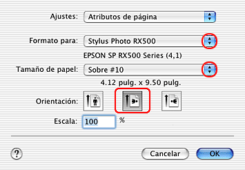 Seleccione el tamaño de sobre adecuado en Tamaño papel.