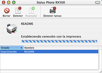 Después de enviar un trabajo de impresión, en la barra de tareas aparece el botón EPSON Stylus PHOTO RX500. Haga clic en ese botón para abrir EPSON Spool Manager.