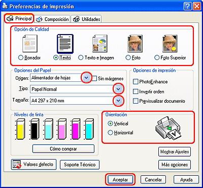 Haga clic en Aceptar para cerrar la ventana de ajustes de la impresora.