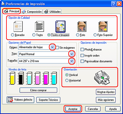 Haga clic en Aceptar para cerrar la ventana de ajustes de la impresora.