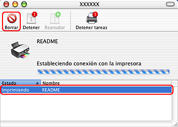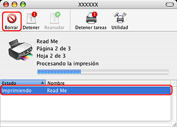 Haga clic en el botón Eliminar para cancelar el trabajo de impresión.