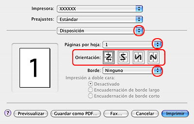 Imprime un borde alrededor de las páginas en todas las hojas. Puede elegir entre Ninguno, Una línea fina, Una línea normal, Doble línea fina y Doble línea normal.
