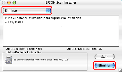 Siga las instrucciones que aparecen en pantalla para desinstalar Epson Scan.