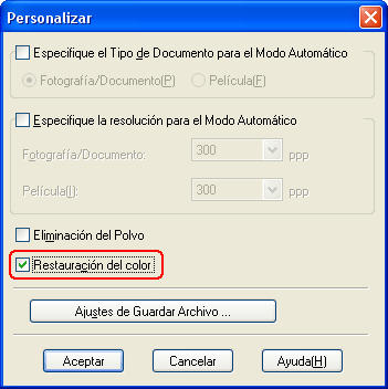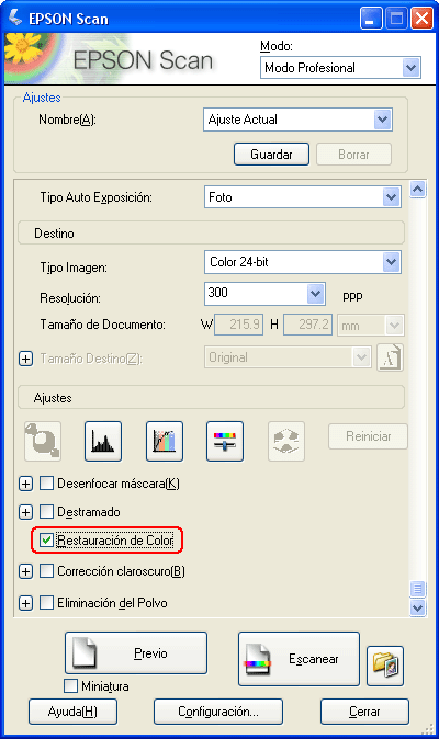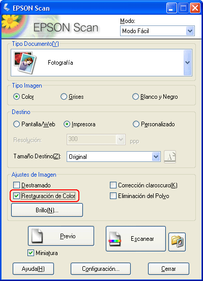 Siga estos pasos para restaurar los colores con Epson Scan.