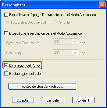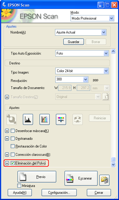 Siga estos pasos para eliminar las marcas de polvo con Epson Scan.