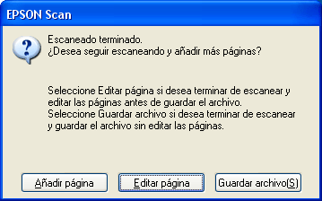 Cuando haya terminado de seleccionar los ajustes de archivos, haga clic en Aceptar. Epson Scan escaneará la página y mostrará esta ventana.
