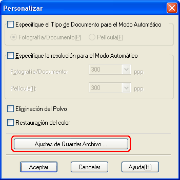 Aparecerá la ventana Ajustes de Guardar Archivo.