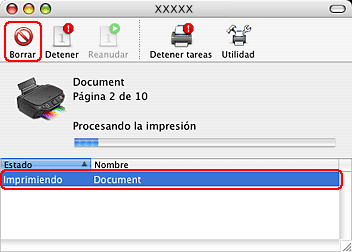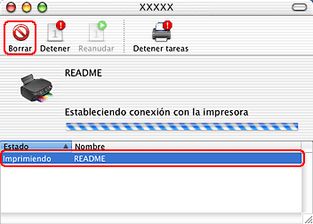 Haga clic en el botón Borrar para cancelar el trabajo de impresión.