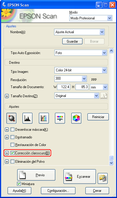 Siga estos pasos para arreglar las fotos con claroscuro con Epson Scan.