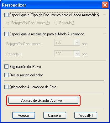 Aparecerá la ventana Ajustes de Guardar Archivo.