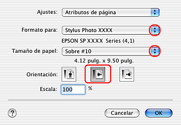 ![]() | Seleccione el tamaño de sobre adecuado en Tamaño papel. |