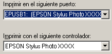 Si EPUSBX: (EPSON Stylus Photo RX600) aparece en el cuadro de lista Imprimir en el siguiente puerto, significa que el controlador de dispositivo de impresora USB y el software de la impresora están correctamente instalados. Si no aparece el puerto correcto, vaya al paso siguiente.