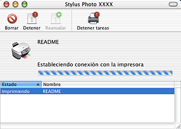 Una vez enviado un trabajo de impresión, en la barra de tareas aparece el botón EPSON Stylus Photo RX600. Haga clic en ese botón para abrir EPSON Spool Manager.