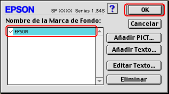 Si desea utilizar un archivo de imagen como marca de fondo, haga clic en Añadir PICT. Elija el archivo de imagen deseado y haga clic en Abrir.