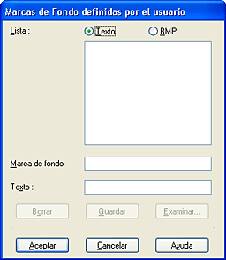 Puede añadir a la lista Marca de fondo sus propias marcas de fondo basadas en texto o en imagen.