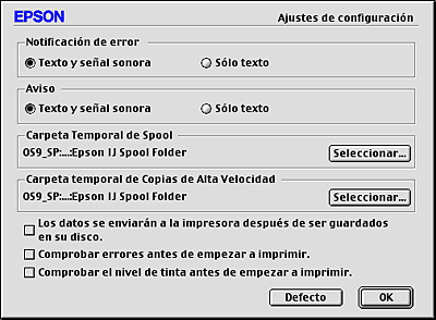 Si desea cambiar la forma en que la utilidad EPSON StatusMonitor supervisa este producto o la manera en que éste maneja los trabajos de impresión, siga estos pasos.