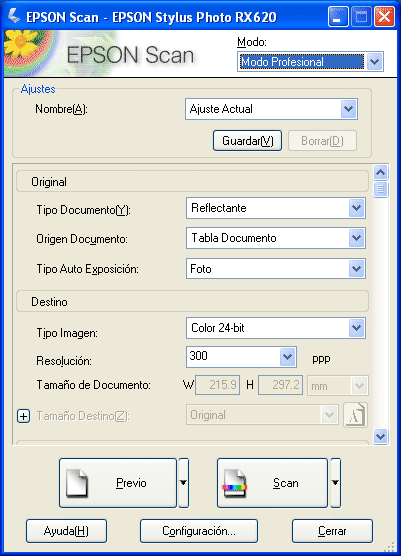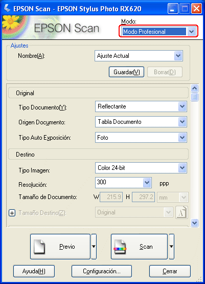 Siga estos pasos si desea configurar los ajustes adecuados para escanear documentos y fotos (documentos reflectantes) en el modo Profesional.