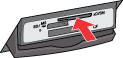 Asegúrese de que el indicador de tarjetas de memoria contiguo a la ranura de la tarjeta esté apagado. Inserte una tarjeta de memoria todo lo que pueda dentro de la ranura.