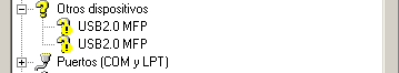 Si, bajo Otros dispositivos, aparece USB 2.0 MFP o EPSON Stylus Photo RX620, significa que el controlador de impresora no está bien instalado. Vaya al paso 5.